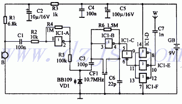 别看这个电路简单,它在开阔地带能发射一公里呢。优点是简单,变容管调制稳定。由于不是频合,只是业余用。501可以用D-40代替。 Re:业余小小调频发射电路欣赏