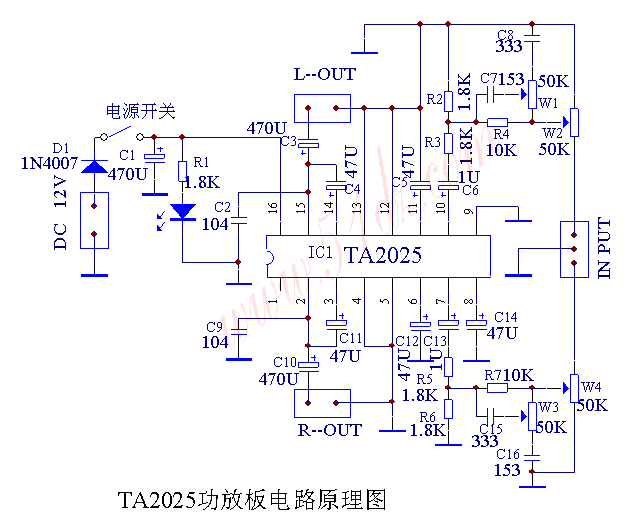 2025功放套件的原理图如下: